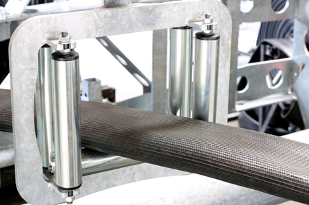 Die rotierende Stahltrommel besitzt eine Edelstahlachse, die in einem flankierend angebrachten LFD-Stehlagern endet. An dieser Stelle lagert das Gewicht der schweren Stahltrommel und genau dort werden die hohen Zugkräfte beim Einzug der am Boden reibenden Rohre aufgefangen. Auf Robustheit ausgelegt sind auch die Dreifach-Rollenführungen des Spulwagens, weil beim Aufspulen des Rohres enorme Seitenkräfte entstehen. Es muss über die gesamte Breite der Trommel exakt aufgewickelt werden, was extrem schwierig ist, wenn es seitlich in der Fahrspur abgelegt wurde. In der Buchse des Spulwagens sind Rillenkugellager von LFD verbaut. Sie unterstützen die Funktion des Führungsbolzens, der der Nut der Spindelwelle folgt.  Die Spindelwelle wiederum ist beidseitig mit funktionsgenau angepassten LFD-Flanschlagern gelagert, damit ein störungsfreier Betrieb gewährleistet ist.